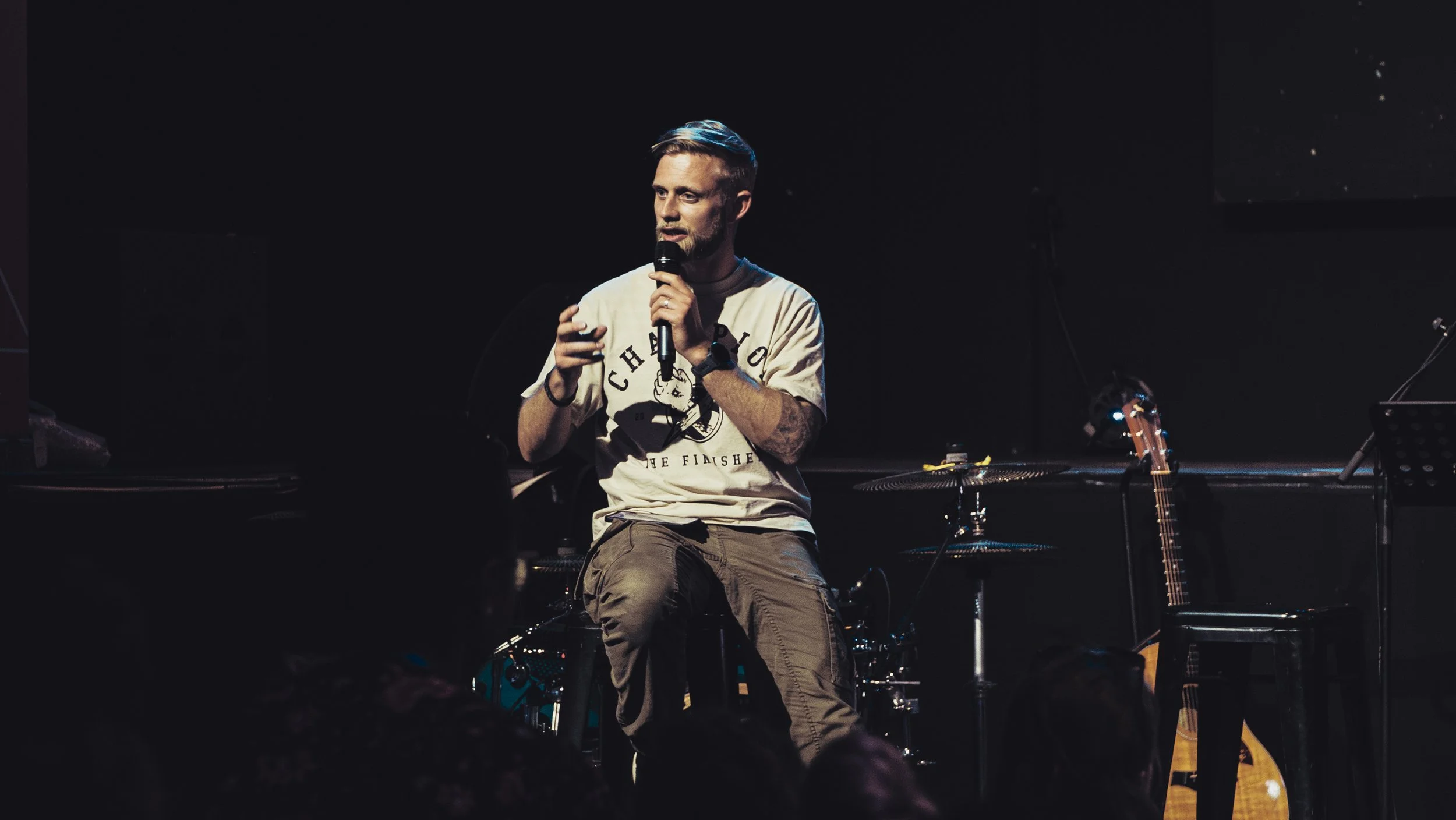 A typical Sunday includes modern worship music, a short and practical talk about faith and everyday life, and time to connect with others before or after the service. The atmosphere is relaxed and informal, and you are free to participate as much or as little as you feel comfortable with.